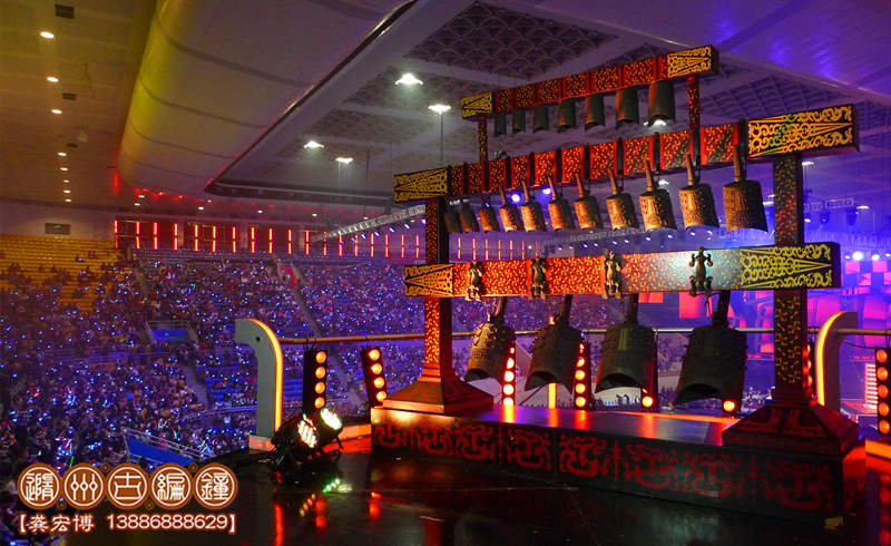 古編鐘公司受節(jié)目組委托將一套中型青銅編鐘運(yùn)達(dá)活動(dòng)現(xiàn)場(chǎng),參加好聲音北京總決賽的開(kāi)場(chǎng)部分,晚會(huì)以敲擊中國(guó)2400多年前的編鐘之聲開(kāi)場(chǎng),寓意中國(guó)文化底蘊(yùn)豐厚,好聲音自古傳今,節(jié)目由此發(fā)掘出中國(guó)眾多好聲音學(xué)員,開(kāi)創(chuàng)新一代造星之路。