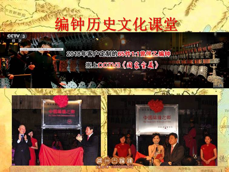 序:同學(xué)們,大家好!我是編鐘文化傳承人龔宏博,從我的父輩起就開始從事編鐘的復(fù)仿制工作,如今已有快30年了,感謝謝老師給了我這次機(jī)會(huì),很榮幸今天被邀請(qǐng)來到    學(xué)校,和大家一起分享關(guān)于編鐘的歷史文化。